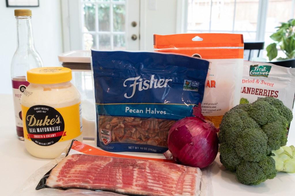 Because let me tell you, that broccoli salad was perfect. The tiny chopped pieces of broccoli, the salty bacon and cheddar, the sweet cranberries, the bite from the onion, and the pecan bringing in that perfect textural component. I was forever changed and immediately knew I’d be replicating this at home.